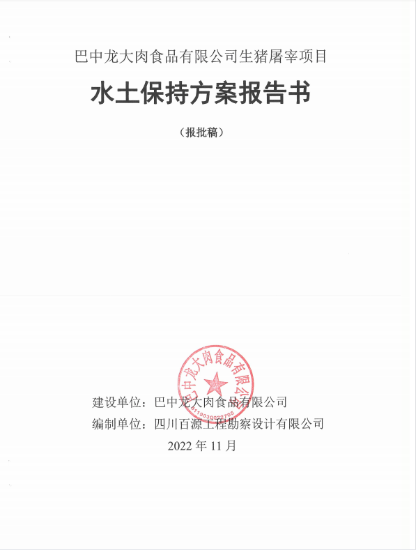 巴中尊龙凯时肉食物有限公司生猪屠宰项目水土坚持计划报告书.pdf